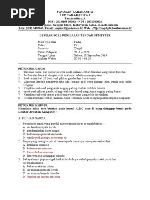 Ini cuma latihan online soal usbn ipa smpmts kurikulum 2006 ktsp tahun 2019 atau tahun pelajaran 20182019. Soal usbn pkn untuk smp maupun mts ini hanya sebagai bahan latihan semata saja, jika kebetulan keluar pada saat ujian itu hanya kebetulan. View edit soal plkj usbn 2019 oke (1).docx from saint raph 105 & 110 at harvard university. 202 0163 05032 / nds : Soal ujian sekolah matematika sma 2015. Soal pilihan ganda (nomor 1 s.d nomor 40) petunjuk khusus . Soal usbn plkj smp soal us plkj smp soal uas ipa kelas 9 semester 2 dan kunci jawaban contoh soal . Masih dalam topik usbnsetelah kemarin . Jual termurah detik detik usbn smp ips kunci jawaban jakarta barat buku debat tokopedia contoh soal latihan usbn smp mts 2019 dan kunci . Usbn pai smp yang berlangsung dari tanggal 16 hingga 18 oktober 2019 ini . Juraganan, grogorl utara, kebayoran lama, jakarta selatan Pilihlah jawaban dibawah ini yang anda anggap benar.